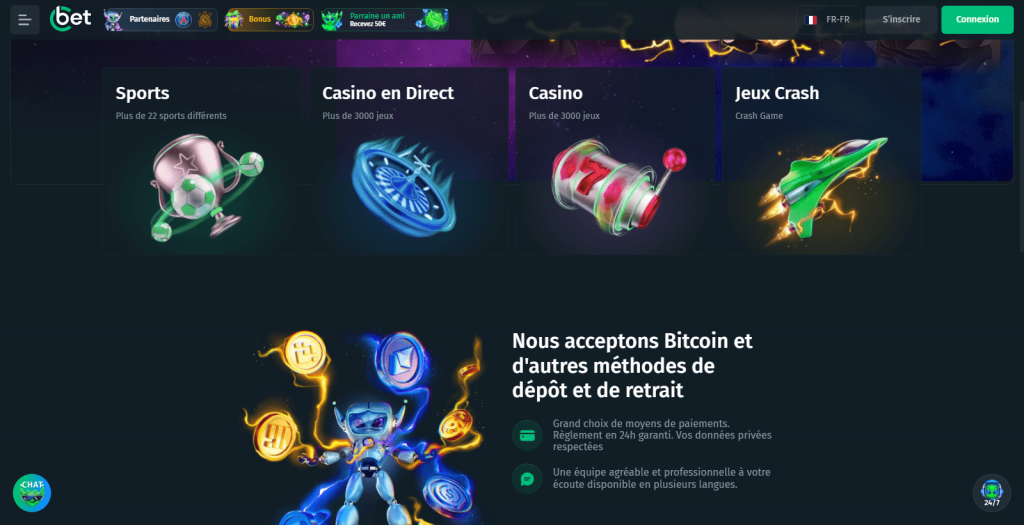 | Cbet | 500€ | Rapidité des paiements | < 12h (Crypto) |